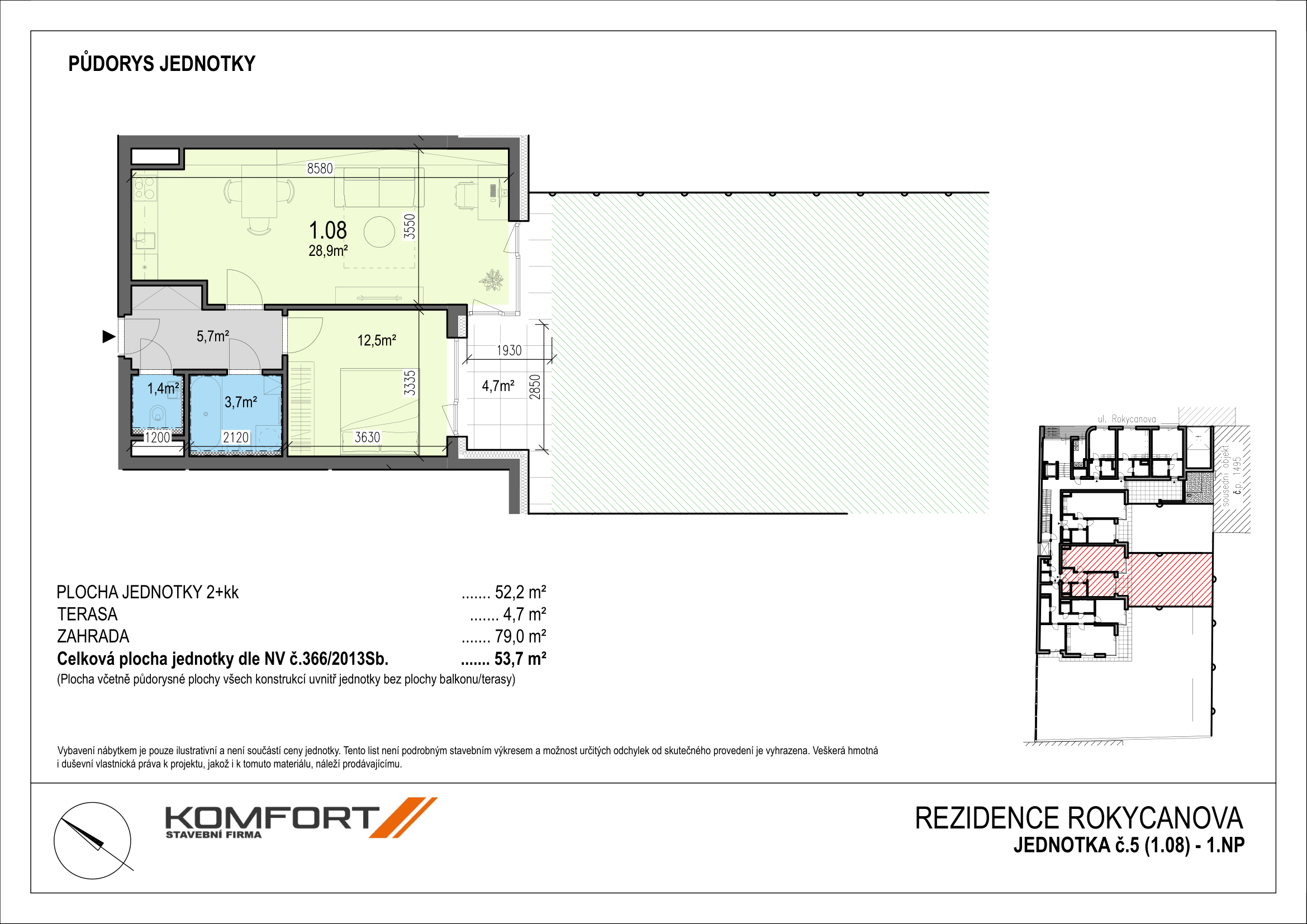 Celková plocha jednotky dle zákona č. 89/2012 53,7 m2