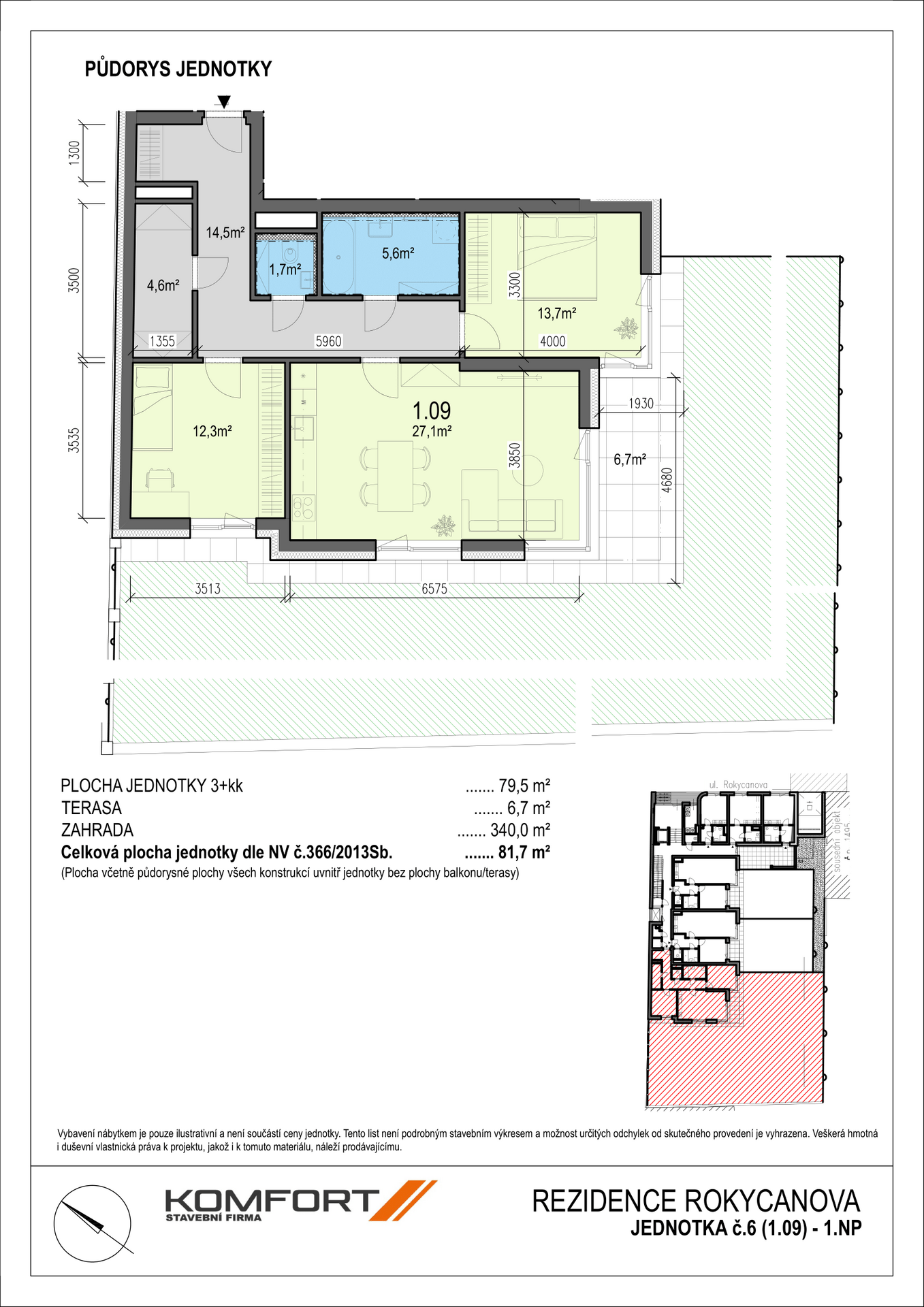 Celková plocha jednotky dle zákona č. 89/2012 81,7 m2