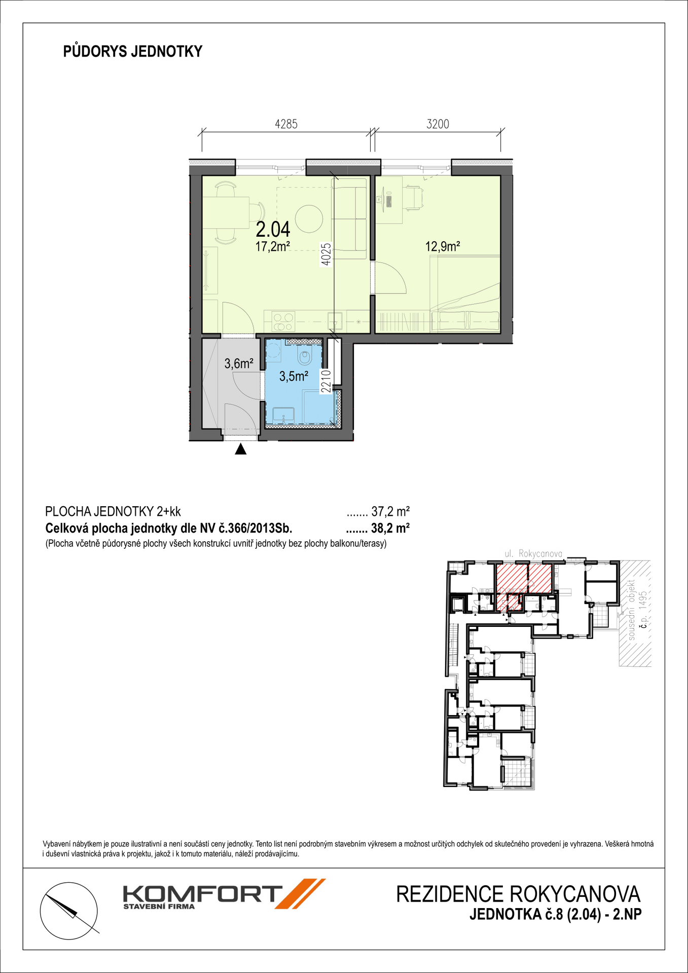 Celková plocha jednotky dle zákona č. 89/2012 38,2 m2