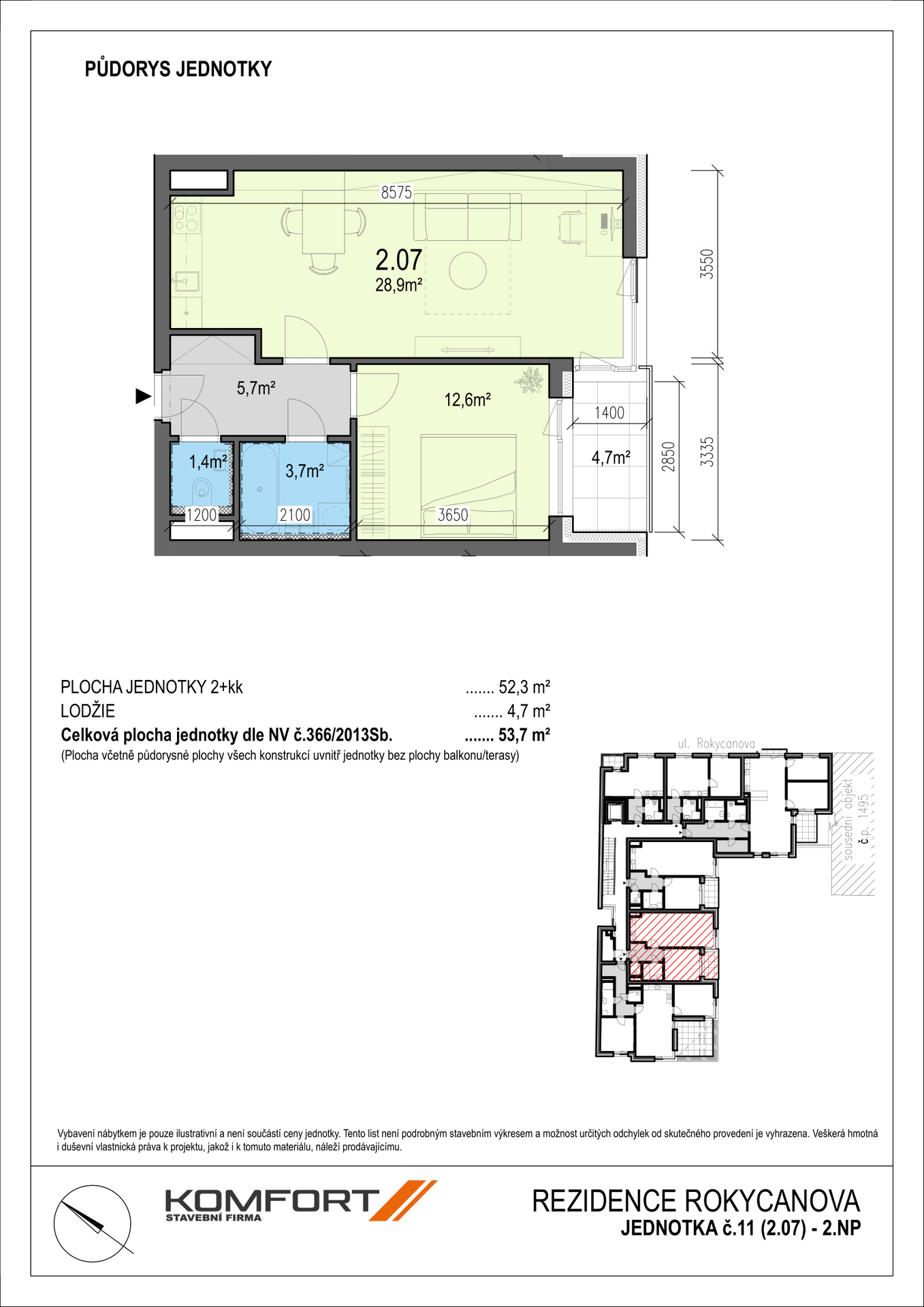 Celková plocha jednotky dle zákona č. 89/2012 53,7 m2
