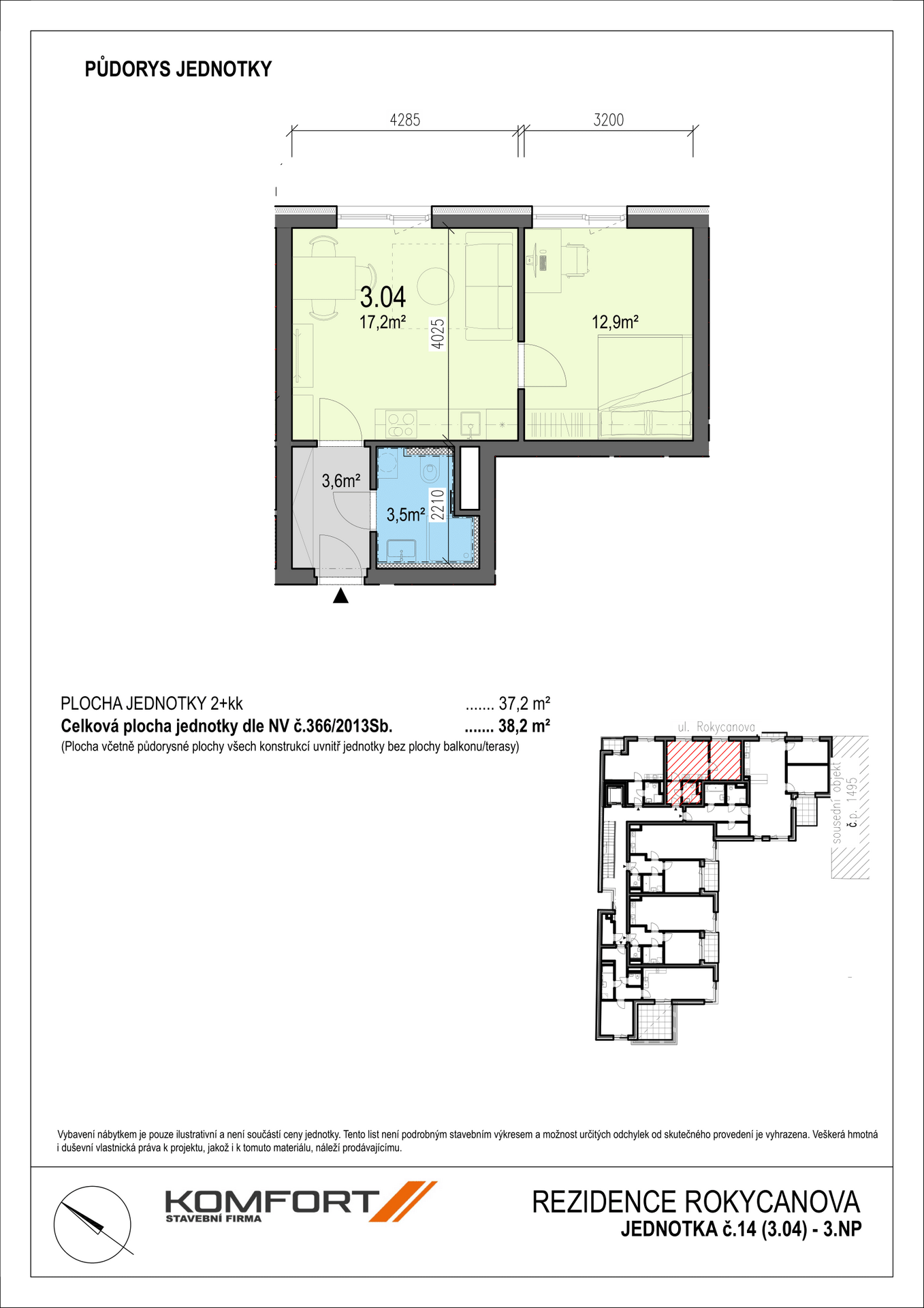 Celková plocha jednotky 37,2 m2