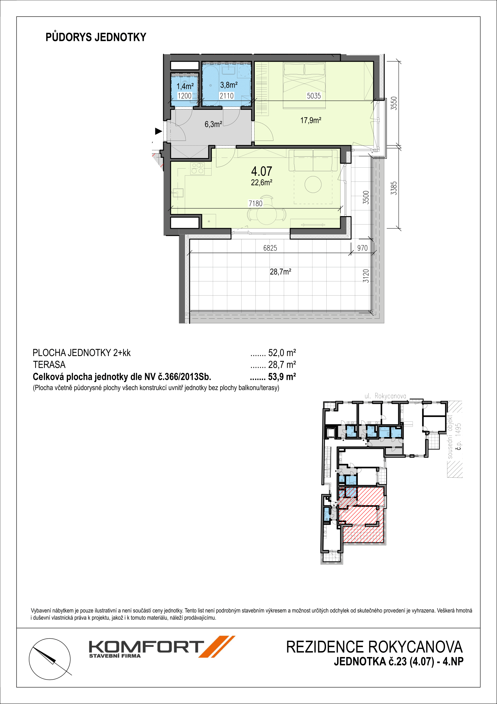 Celková plocha jednotky dle zákona č. 89/2012 53,9 m2